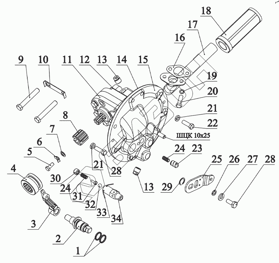 Графический каталог запасных частей к технике: МТЗ БЕЛАРУС 1025.7. Привод насосов 1222-1704010