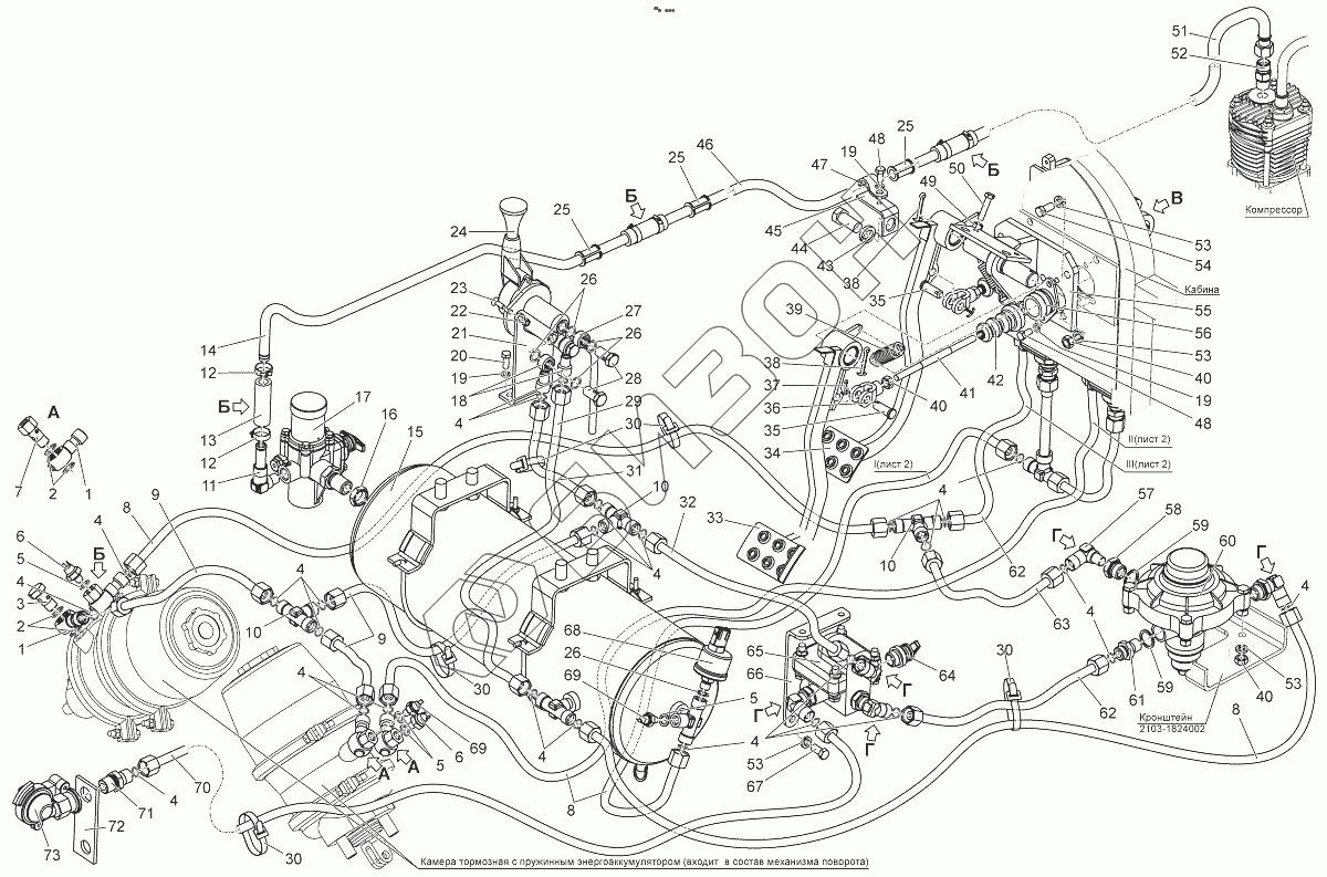 Графический каталог запасных частей к технике: МТЗ БЕЛАРУС 2103. Система управления тормозами