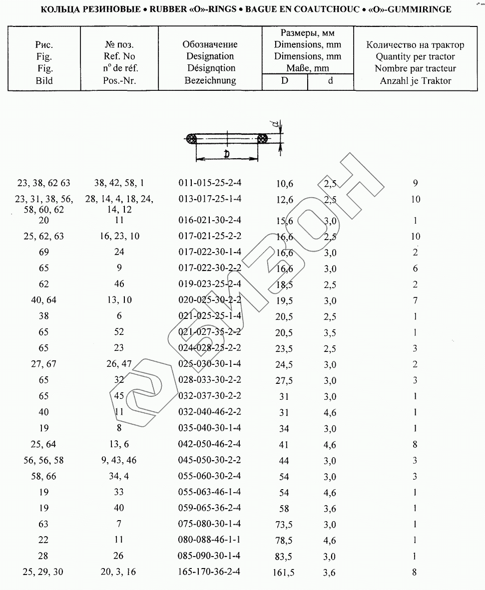 Графический каталог запасных частей к технике: МТЗ БЕЛАРУС 320. Кольца резиновые;Rubber O-Rings