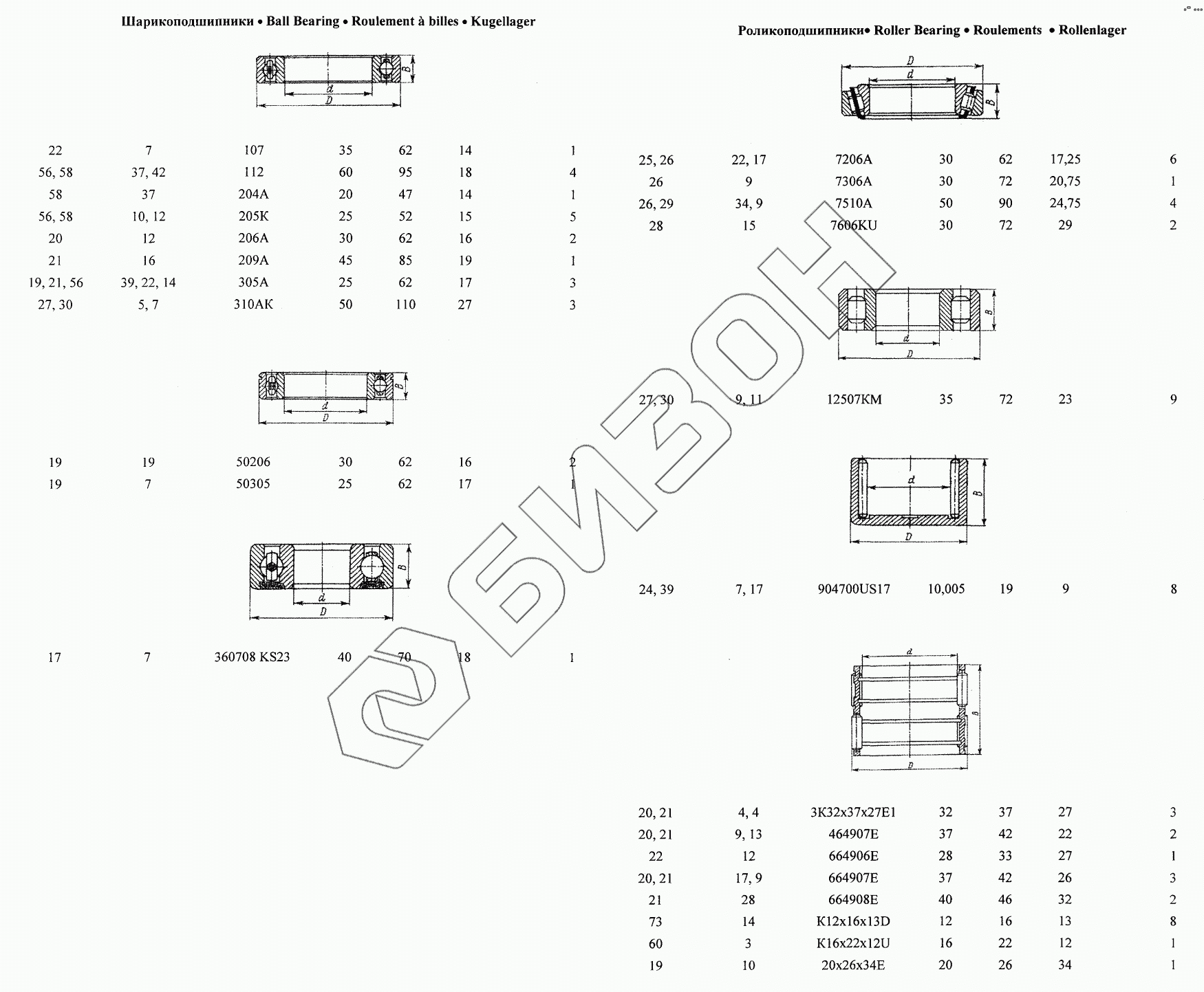 Графический каталог запасных частей к технике: МТЗ БЕЛАРУС 320. Подшипники;Bearing