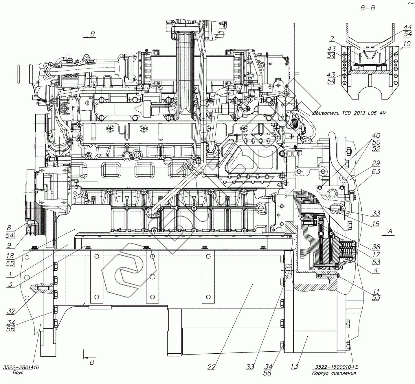 Графический каталог запасных частей к технике: МТЗ БЕЛАРУС 3522.5. Установка двигателя