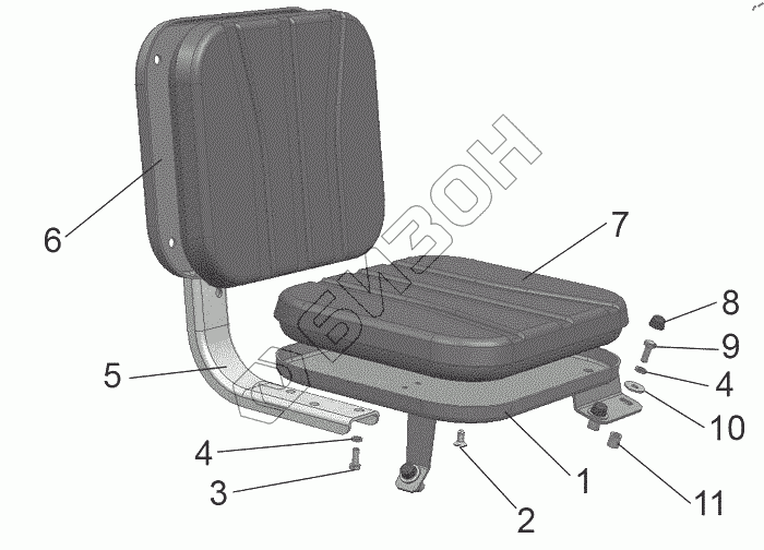Графический каталог запасных частей к технике: МТЗ БЕЛАРУС 3525. Сиденье дополнительное 3522-6809005