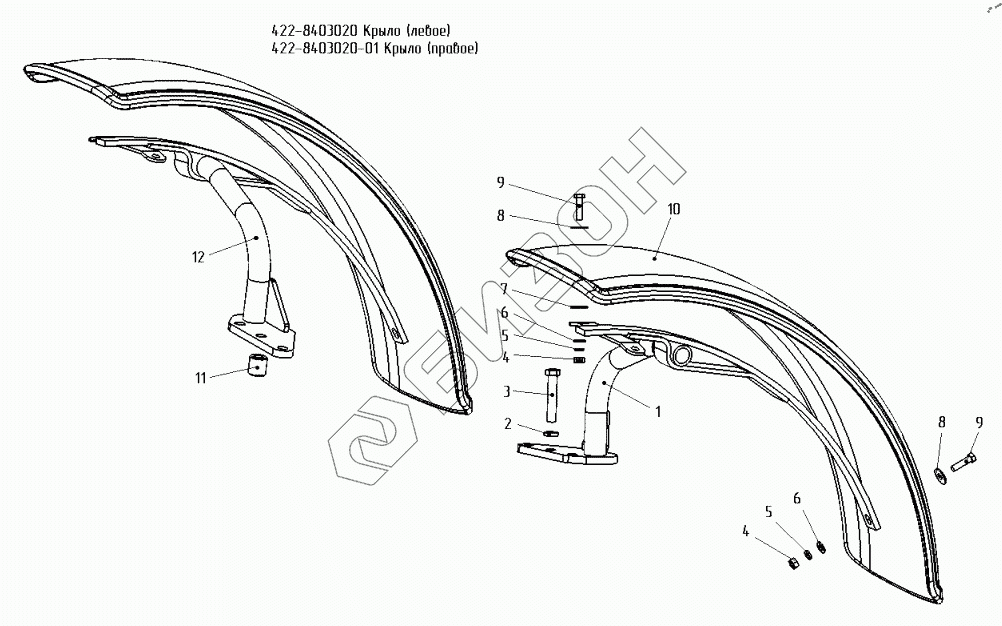 Графический каталог запасных частей к технике: МТЗ БЕЛАРУС 451. Крылья передних колес 422-8403020