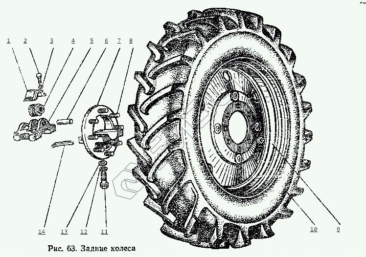 Графический каталог запасных частей к технике: МТЗ-100. Колеса задние