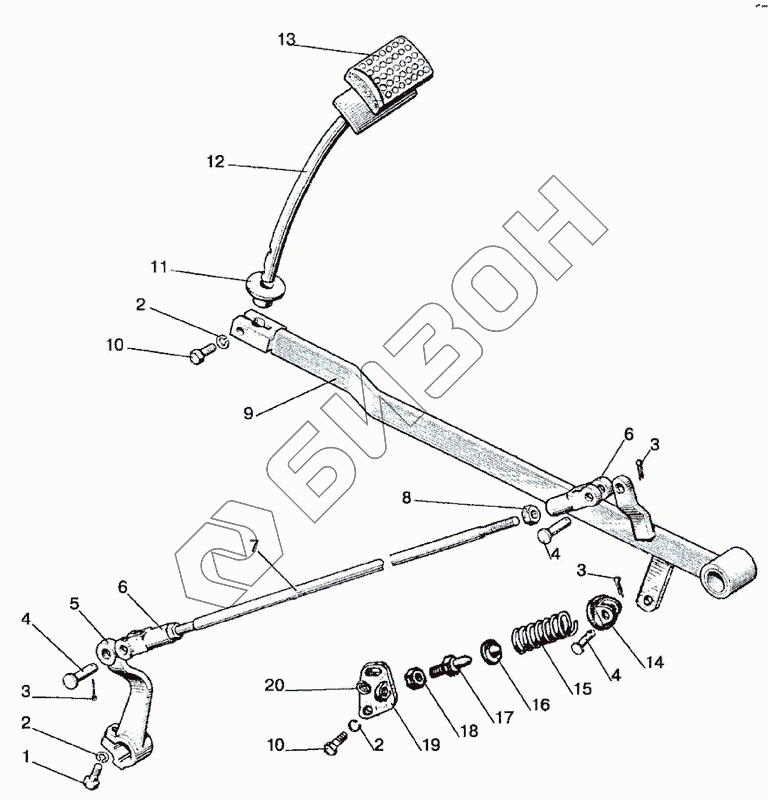 | 7 | 85-1602110 | Тяга сцепления с вилкой и гайкой в сборе |