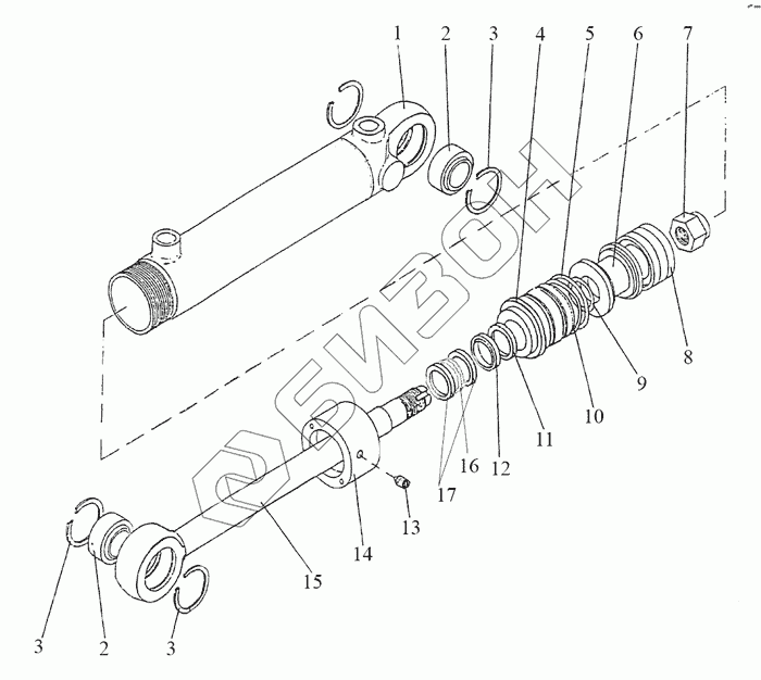 Графический каталог запасных частей к технике: МТЗ-1221.4. Гидроцилиндр 50х25-200