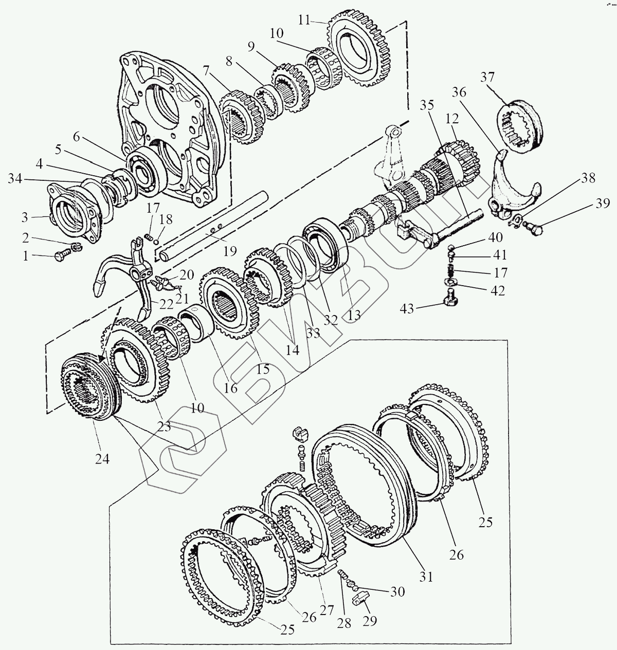 Графический каталог запасных частей к технике: МТЗ-1221.4. Вал промежуточный (24F+12R)