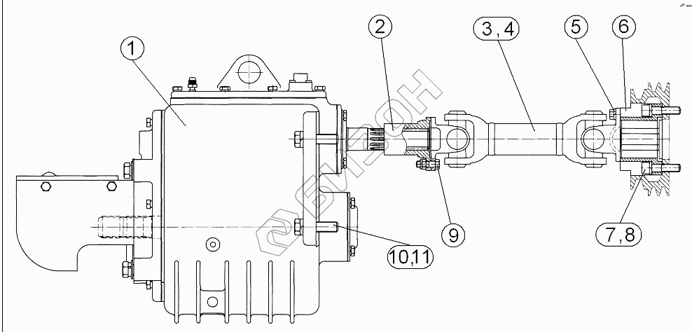 Графический каталог запасных частей к технике: МТЗ-1221 (2009). Вал отбора мощности передний