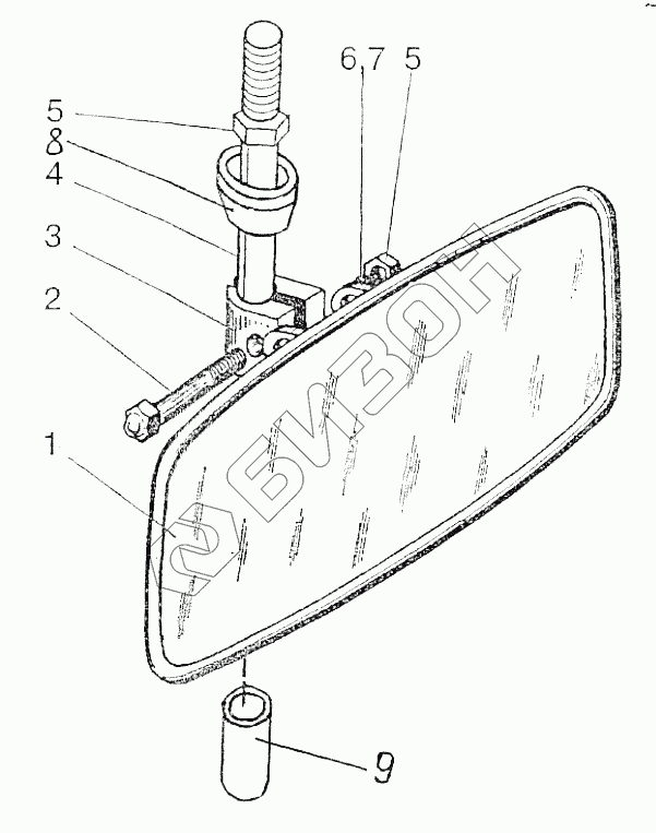 Графический каталог запасных частей к технике: МТЗ-1523. Зеркало внутреннее