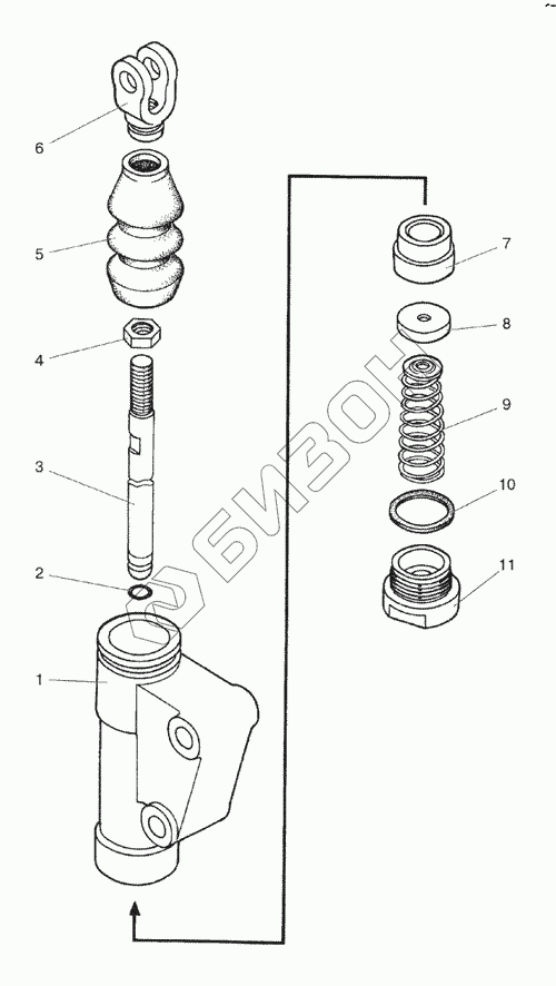 Графический каталог запасных частей к технике: МТЗ-1523. Цилиндр главный (на реверсе)