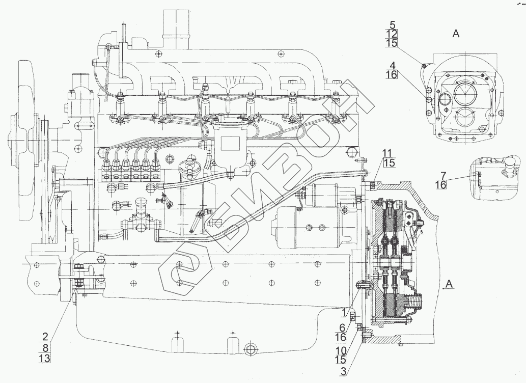Графический каталог запасных частей к технике: МТЗ-1523.6. Установка двигателя