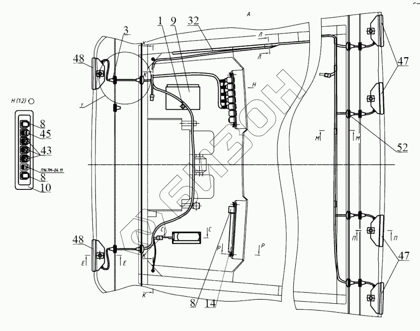 | 43 | ПК150-25.52 | Выключатель фар рабочих |