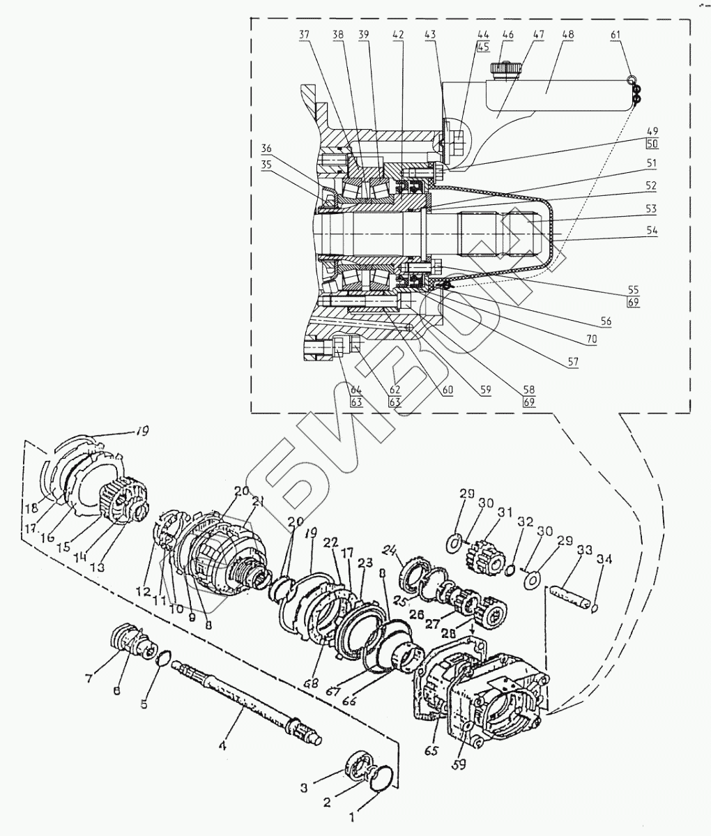 | 38 | 72-2308121 | Кольцо регулировочное В = 5,8 (подбираются при регулировке подшипников) |