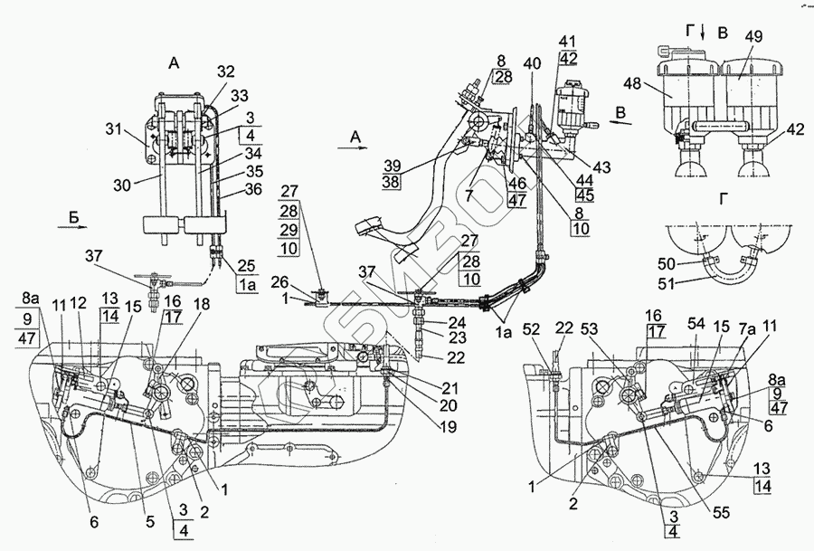 Графический каталог запасных частей к технике: МТЗ-2022. Управление тормозами