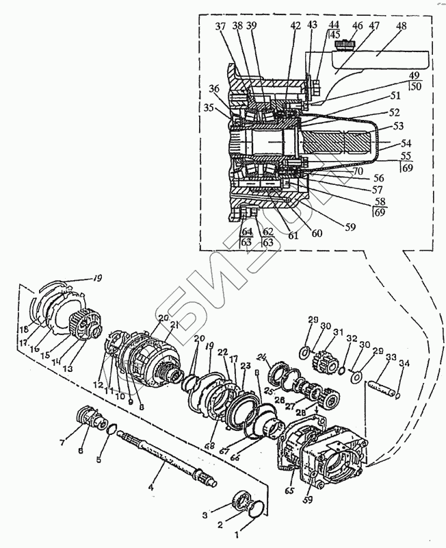 | 38 | 72-2308121 | Кольцо регулировочное В = 5,8 (подбираются при регулировке подшипников) |