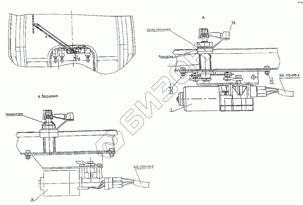 Графический каталог запасных частей к технике: МТЗ-2522. Установка переднего стеклоочистителя