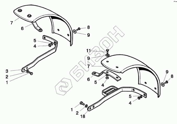 Графический каталог запасных частей к технике: МТЗ-570. Крылья передние (с передней осью)