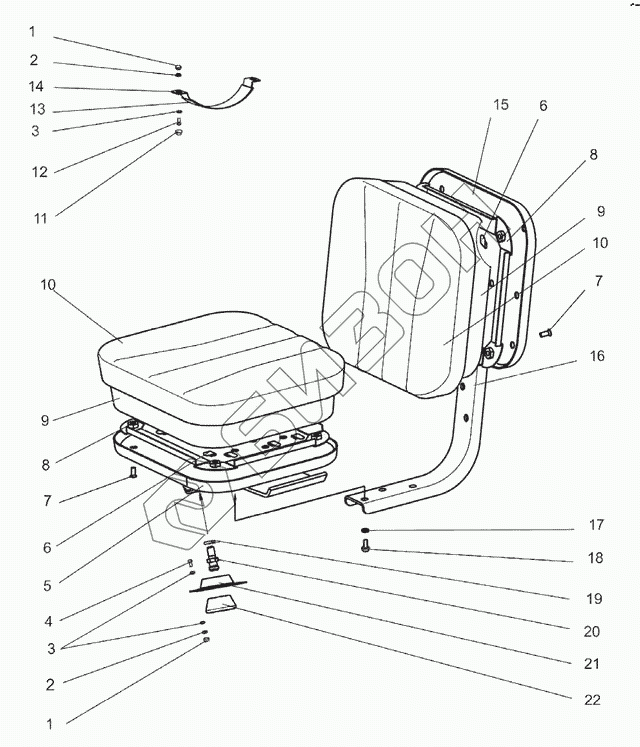 Графический каталог запасных частей к технике: МТЗ-570. Сиденье дополнительное