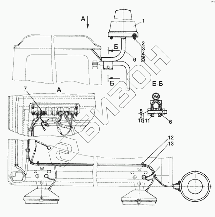 Графический каталог запасных частей к технике: МТЗ-570. Установка маяка сигнального