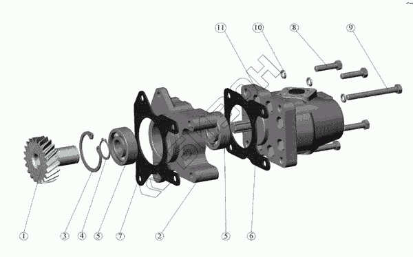 240-1022030 240-1022030 Привод гидронасоса (1, 3-6)