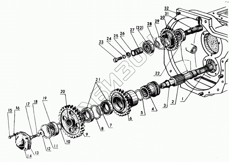 | 6 | 70-1601086-Б | Шестерня привода ВОМ (II ступень) |