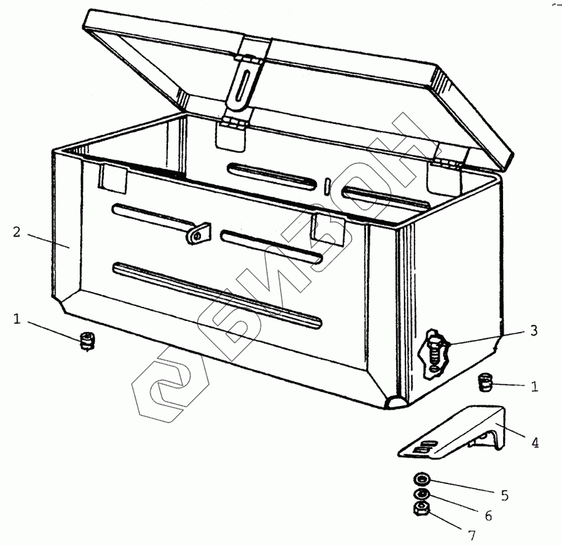 Графический каталог запасных частей к технике: МТЗ-80 (2002). 3919 Ящик инструментальный