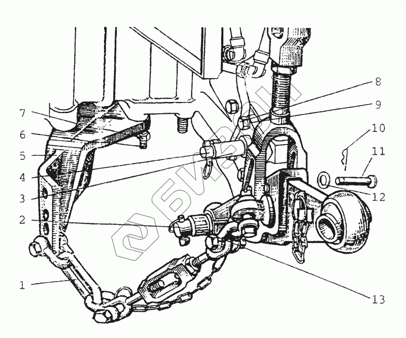 Графический каталог запасных частей к технике: МТЗ-80 (2002). 4605 Кронштейн наружной блокировки