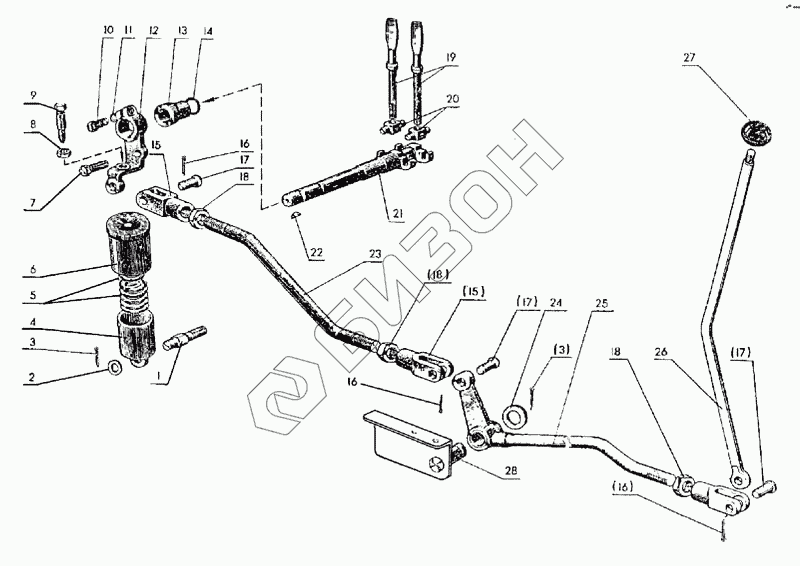 | 23 | 70-4216060-Б | Тяга рычага с осью и гайкой в сборе |