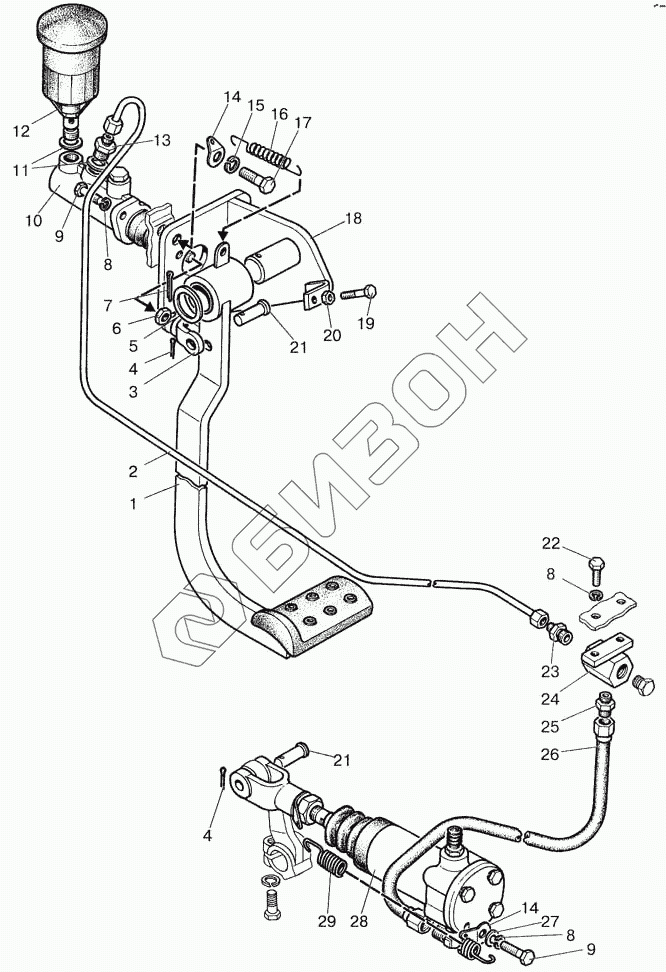 Графический каталог запасных частей к технике: МТЗ-922. Управление сцеплением