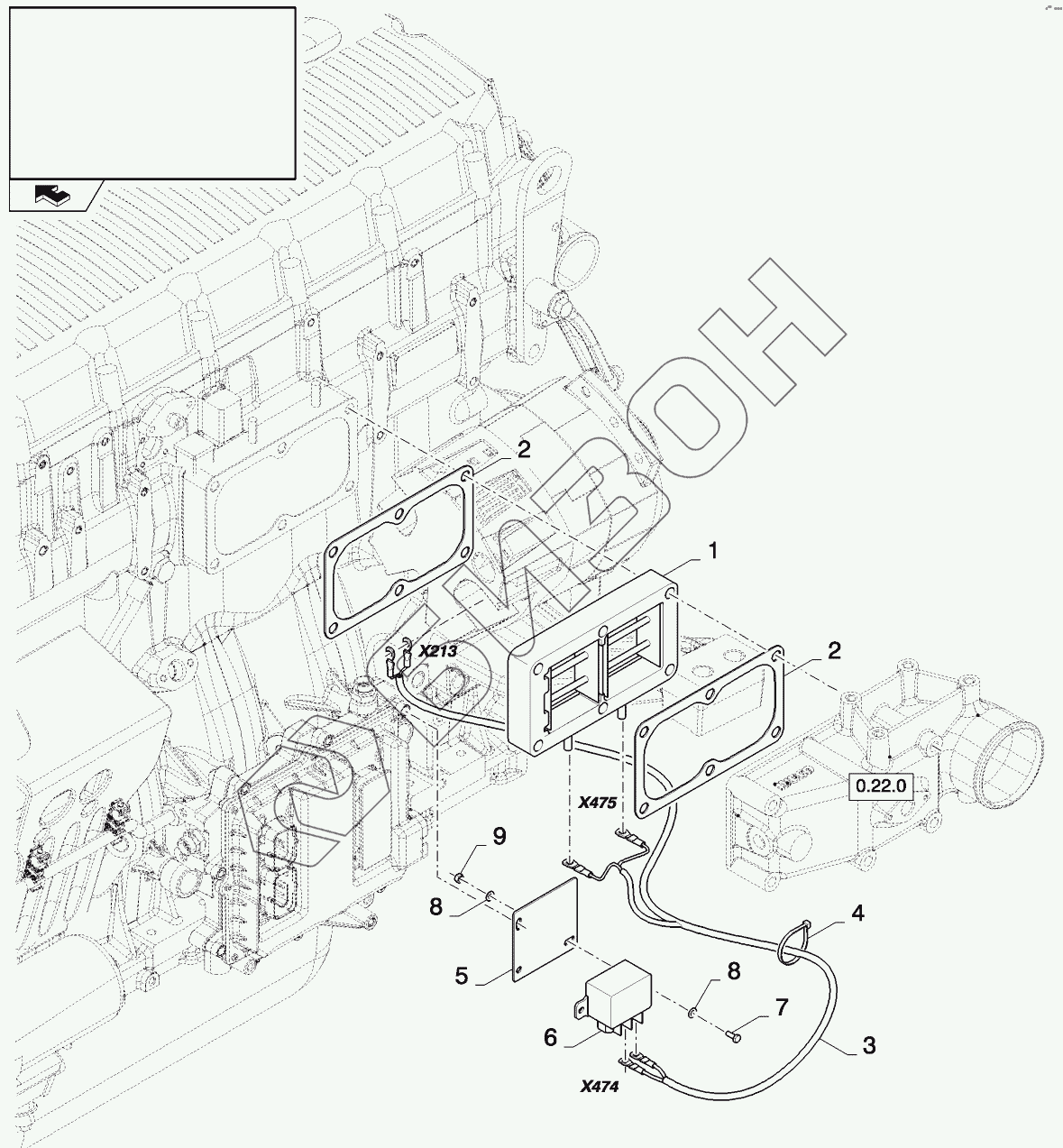 Графический каталог запасных частей к технике: New Holland CSX7080 (D660). BLOCK HEATER