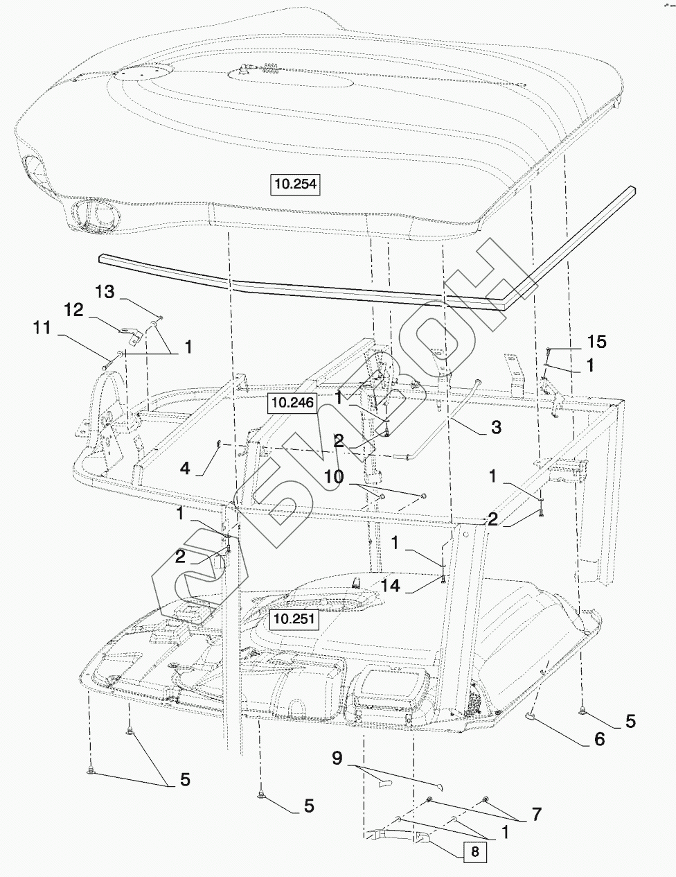 Графический каталог запасных частей к технике: New Holland CSX7080 (D660). CAB ROOF