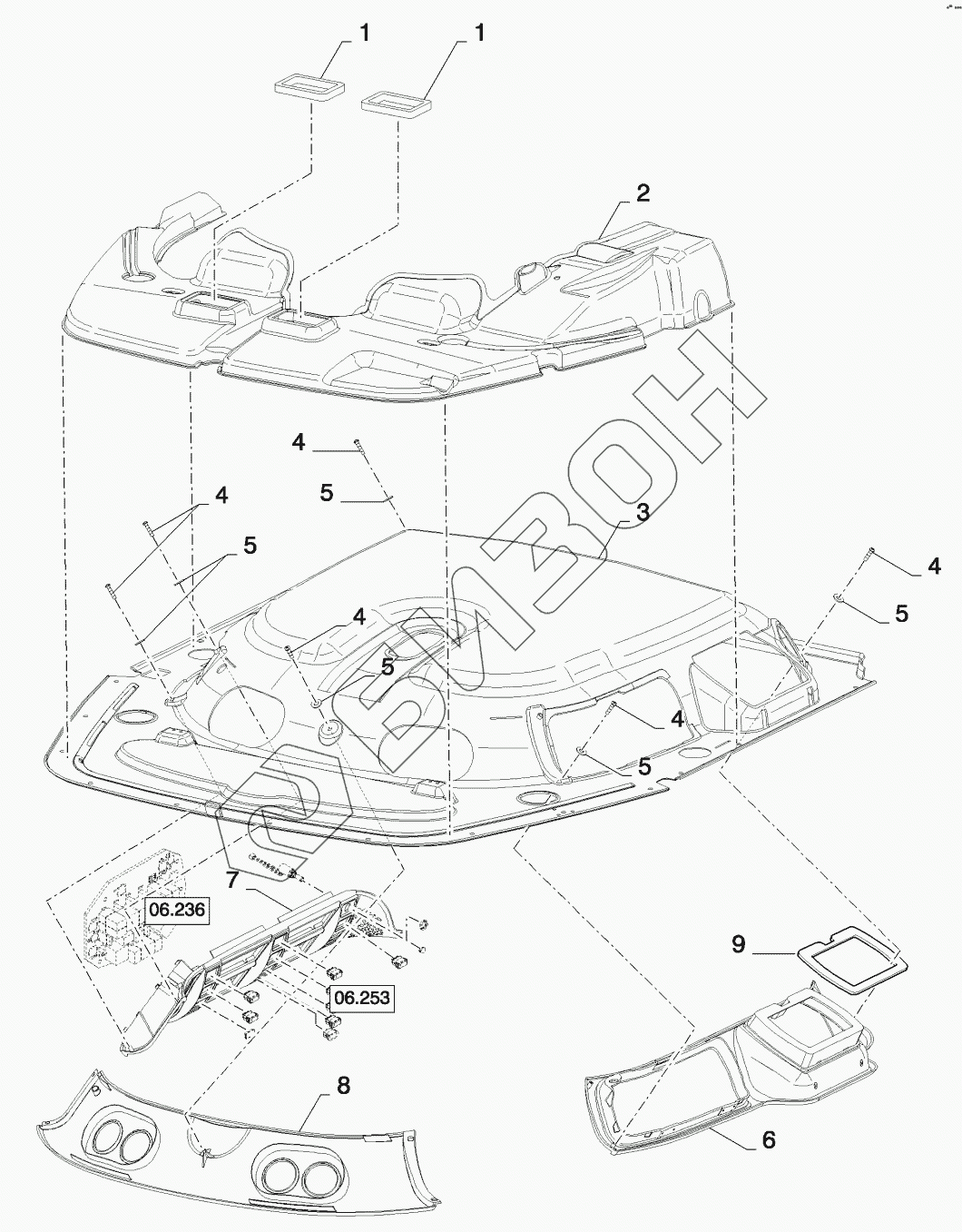 Графический каталог запасных частей к технике: New Holland CSX7080 (D660). CAB ROOF, INNER