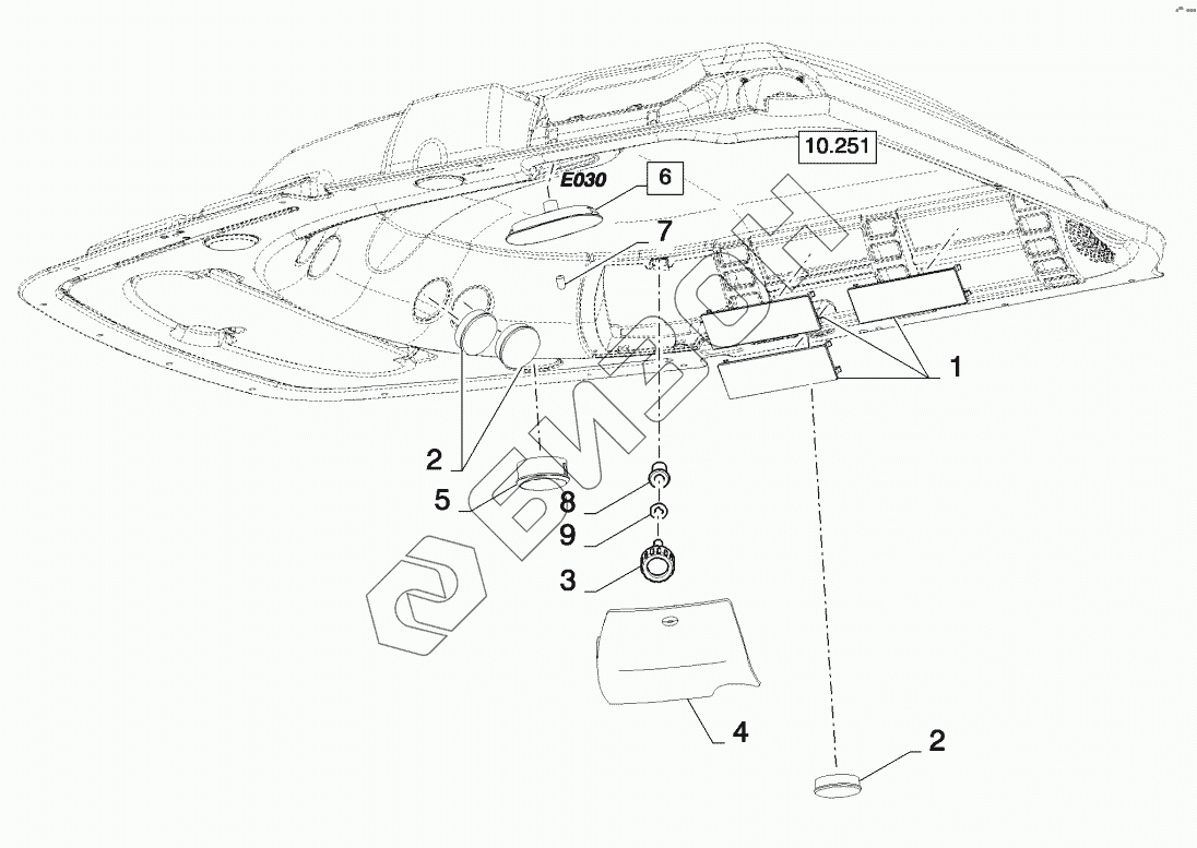 Графический каталог запасных частей к технике: New Holland CSX7080 (D660). CAB ROOF, INNER