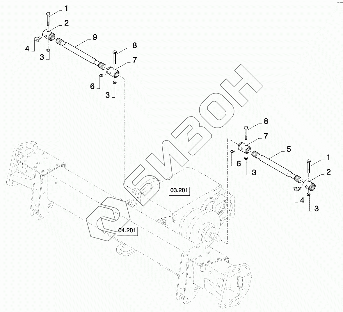 Графический каталог запасных частей к технике: New Holland CSX7080 (D660). DRIVE SHAFTS WTHOUT EXTENSIONS