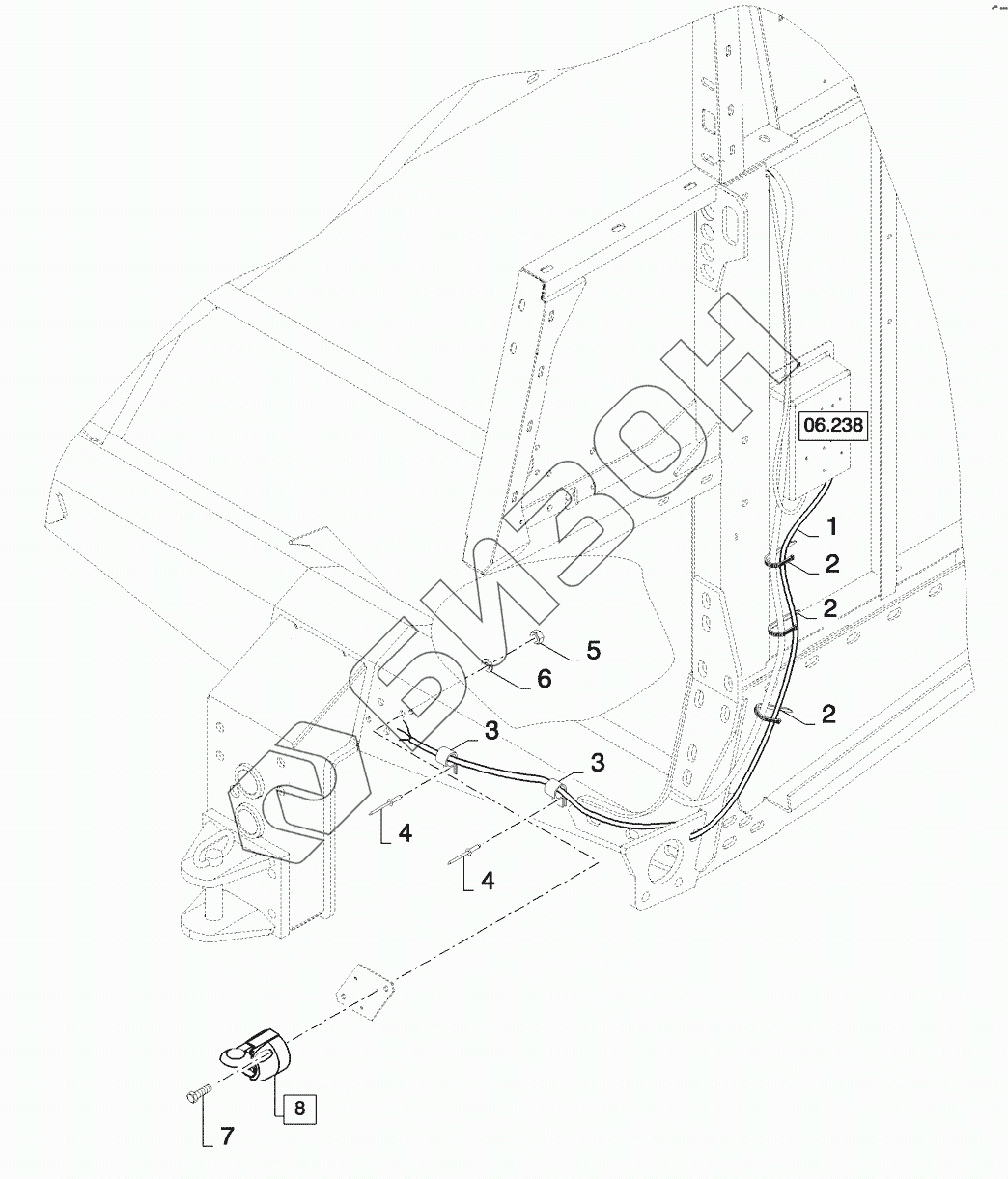 Графический каталог запасных частей к технике: New Holland CSX7080 (D660). ELECTRICS ON HITCH