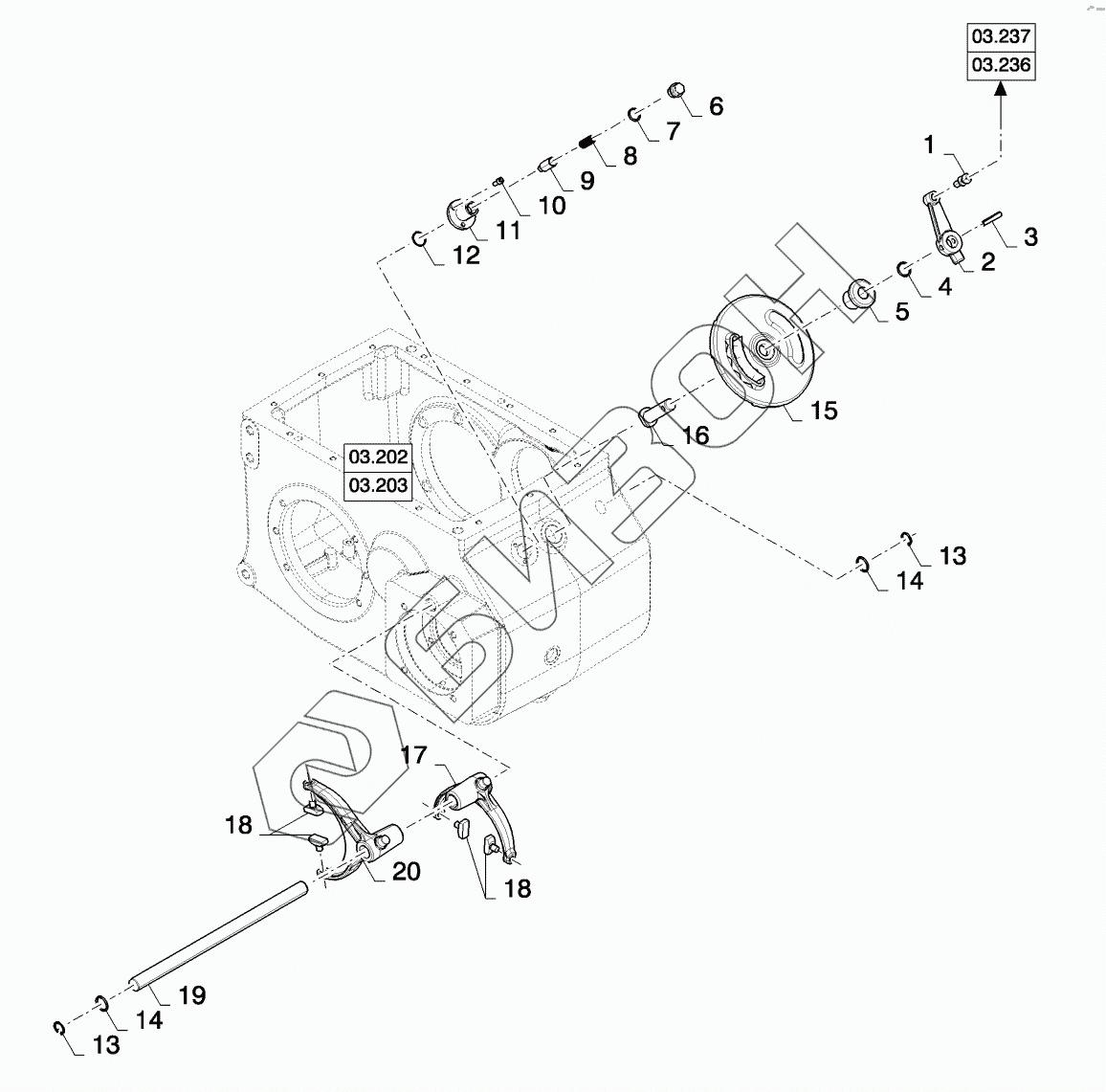 Графический каталог запасных частей к технике: New Holland CSX7080 (D660). GEARBOX, GEARSHIFT CONTROL
