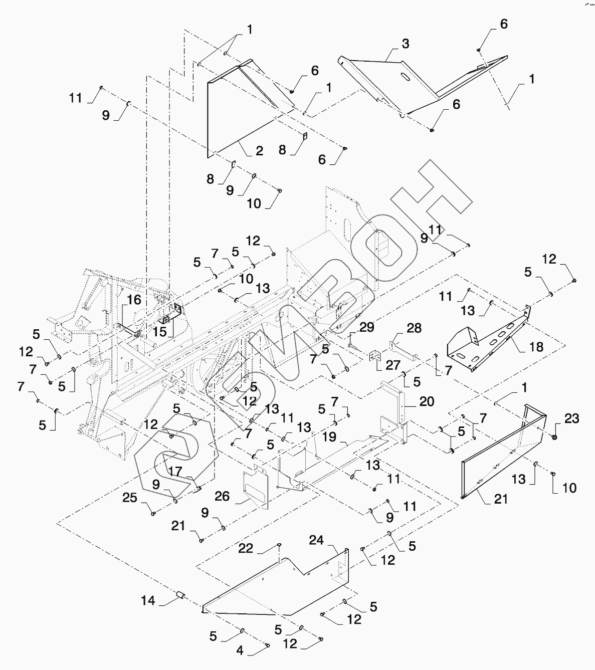 Графический каталог запасных частей к технике: New Holland CSX7080 (D660). LOWER SHIELDS, LH