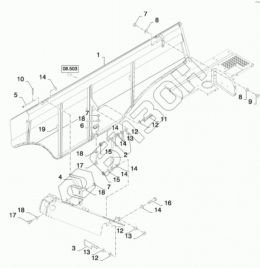 Графический каталог запасных частей к технике: New Holland CSX7080 (D660). LOWER SHIELDS, RH
