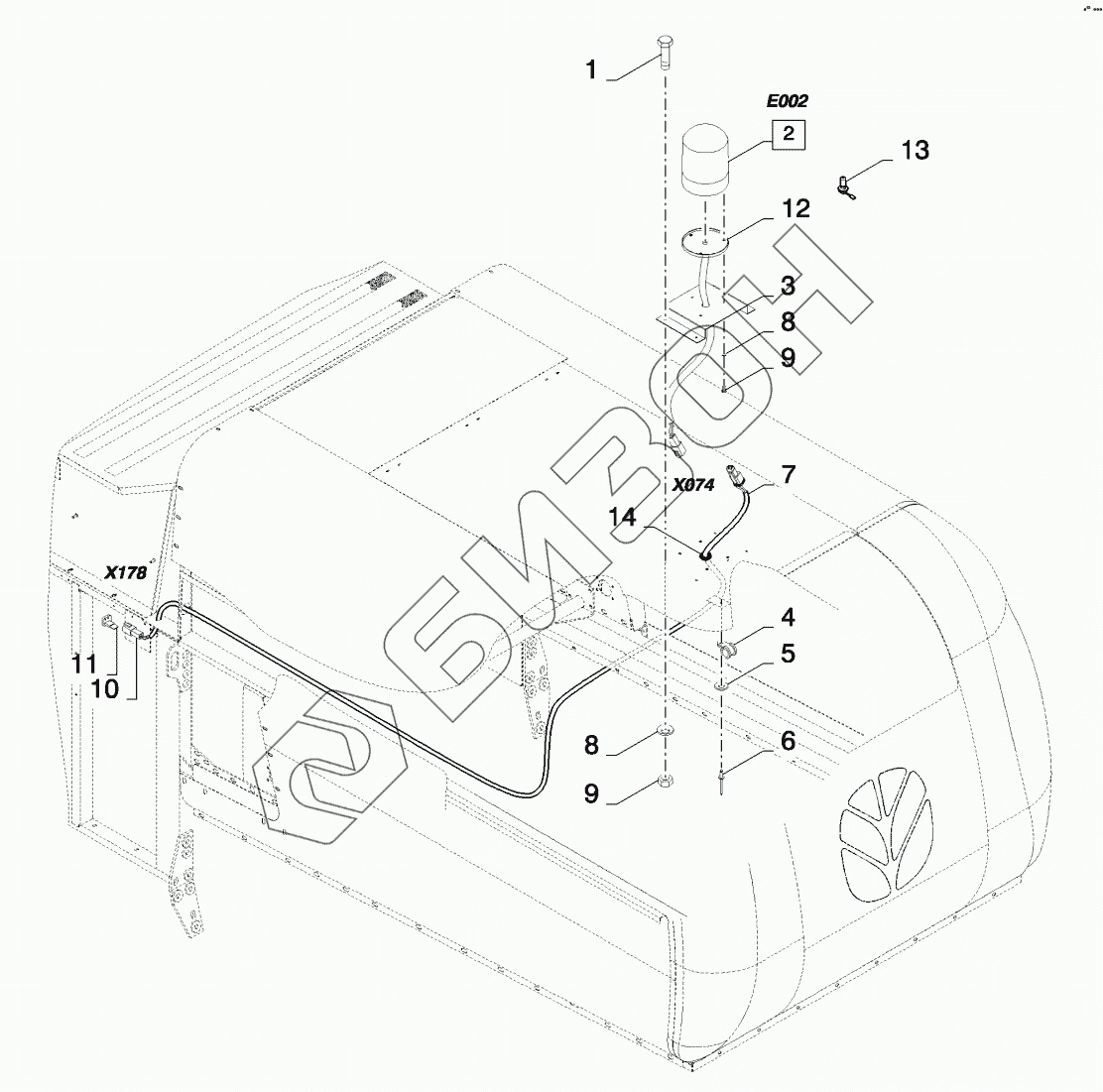 Графический каталог запасных частей к технике: New Holland CSX7080 (D660). REAR BEACON LIGHT