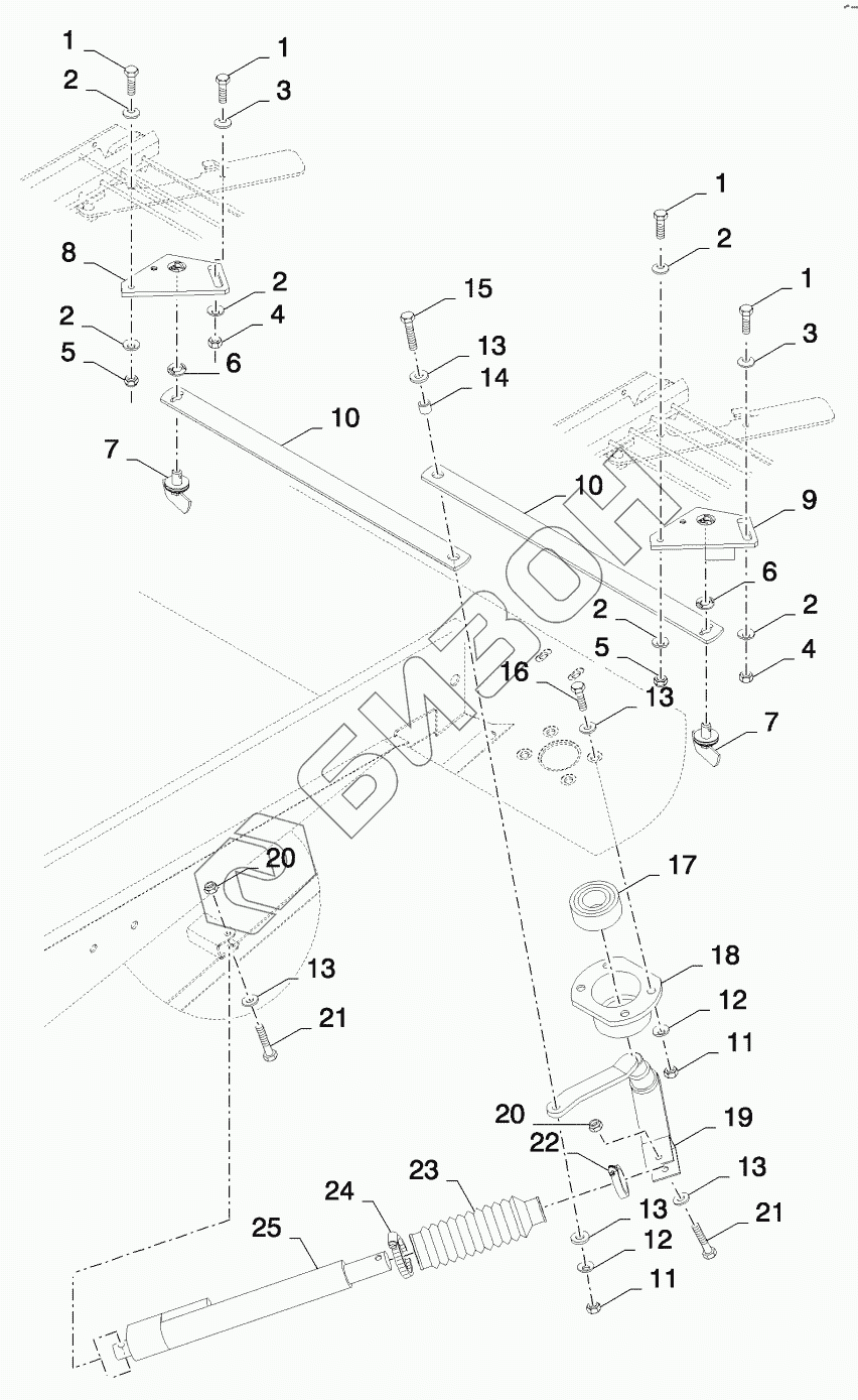 Графический каталог запасных частей к технике: New Holland CSX7080 (D660). REMOTE LOWER SIEVE ADJUSTMENT