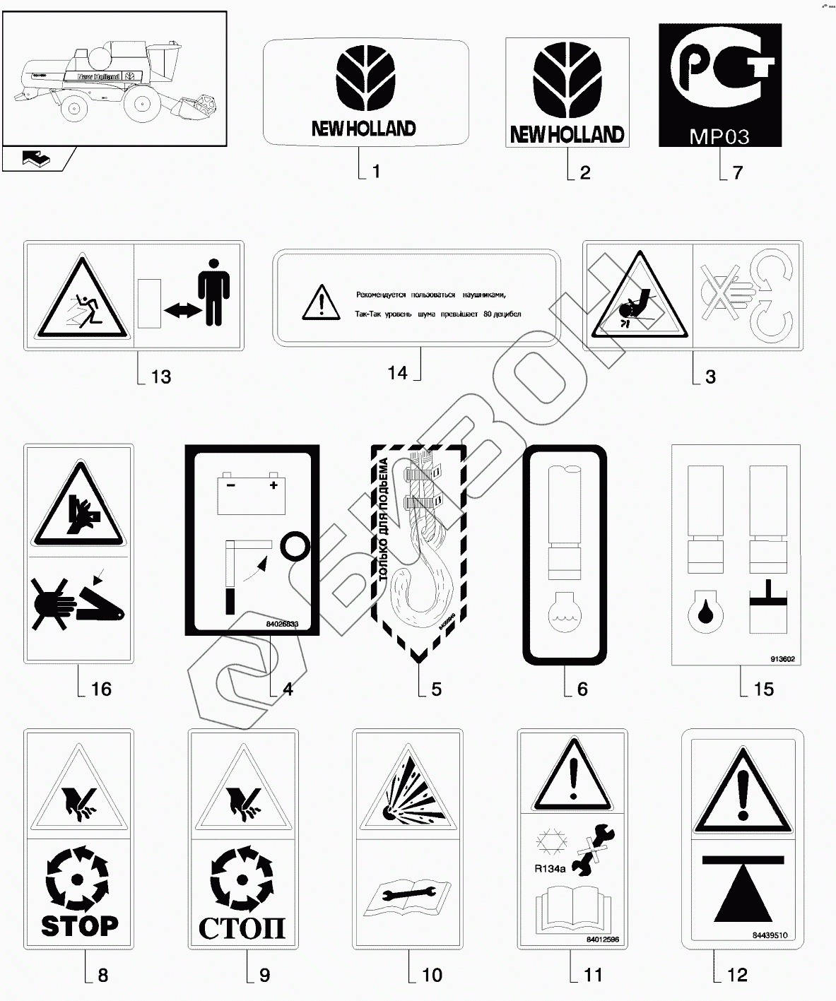 Графический каталог запасных частей к технике: New Holland CSX7080 (D660). SAFETY AND INSTRUCTION DECALS