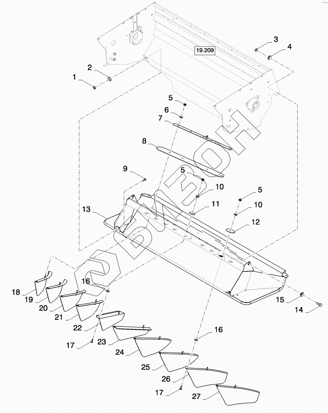 Графический каталог запасных частей к технике: New Holland CSX7080 (D660). SPREADER HOOD