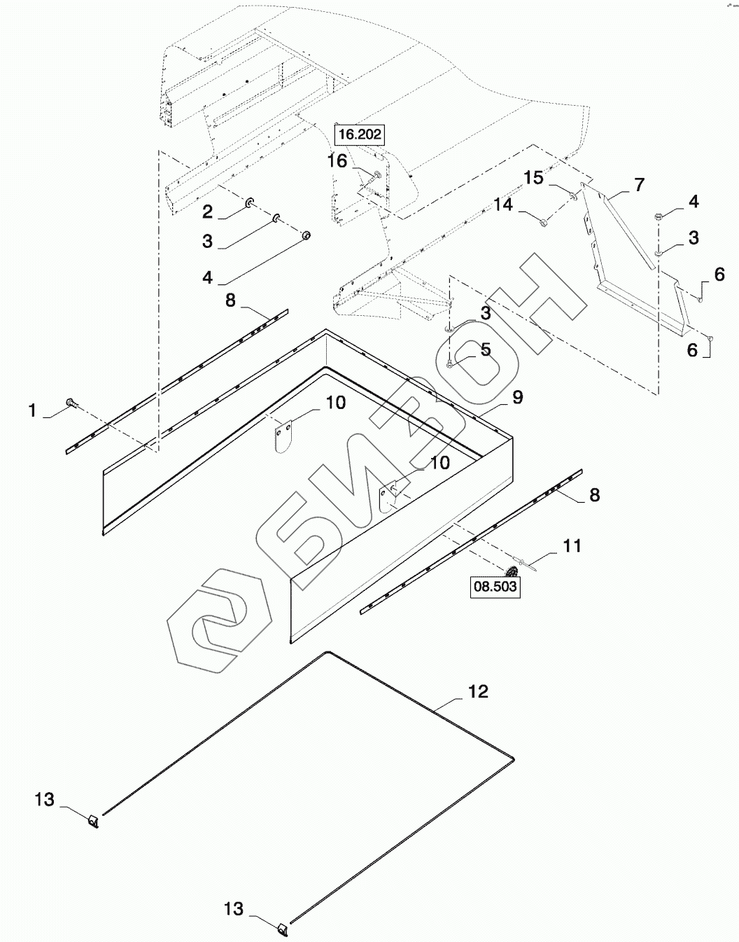 Графический каталог запасных частей к технике: New Holland CSX7080 (D660). STRAW HOOD, CANVAS
