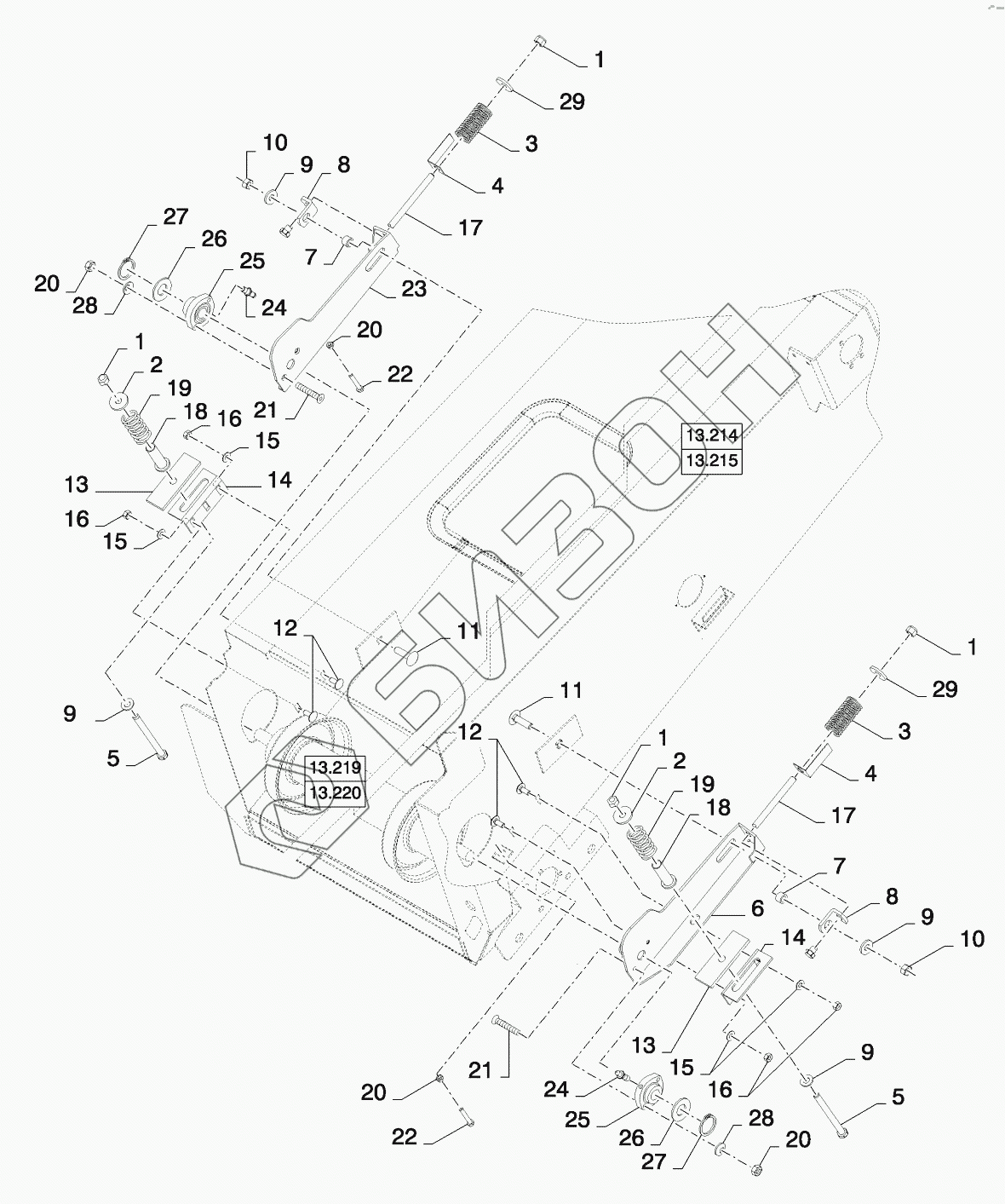 Графический каталог запасных частей к технике: New Holland CSX7080 (D660). SUSPENSION BRACES, FIXED