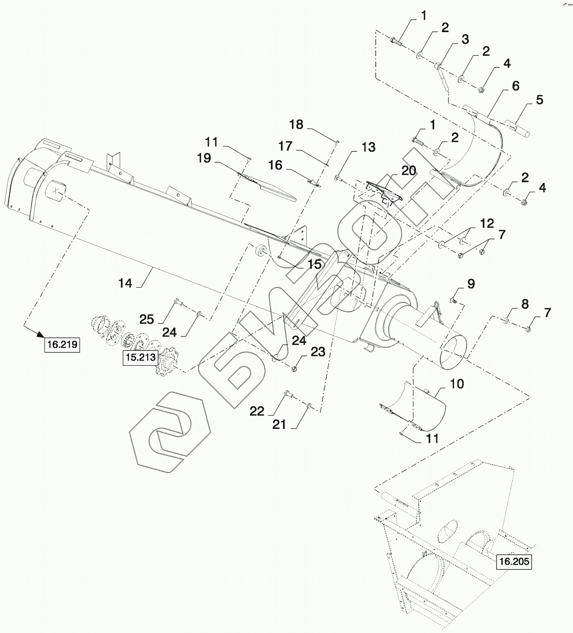 Графический каталог запасных частей к технике: New Holland CSX7080 (D660). TAILINGS ELEVATORS