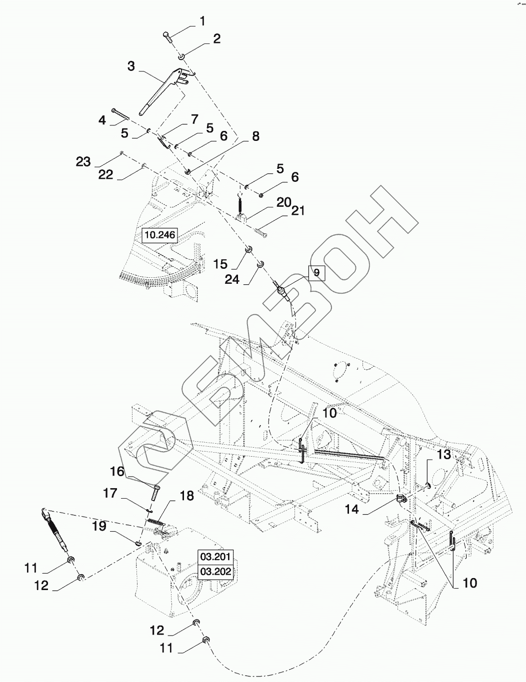 Графический каталог запасных частей к технике: New Holland CSX7080 (D660). TRANSMISSION HANDBRAKE