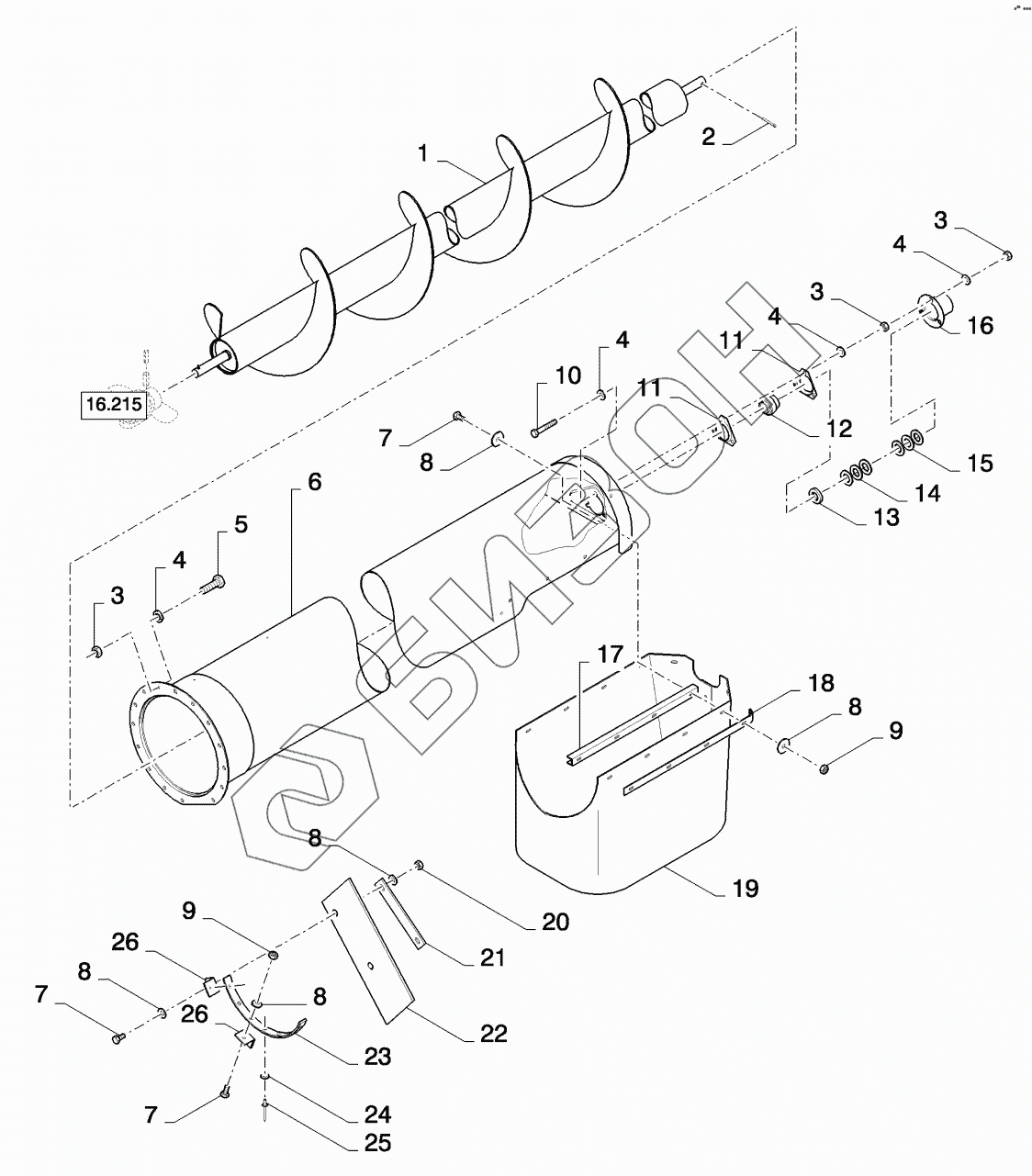 Графический каталог запасных частей к технике: New Holland CSX7080 (D660). UNLOADING AUGER