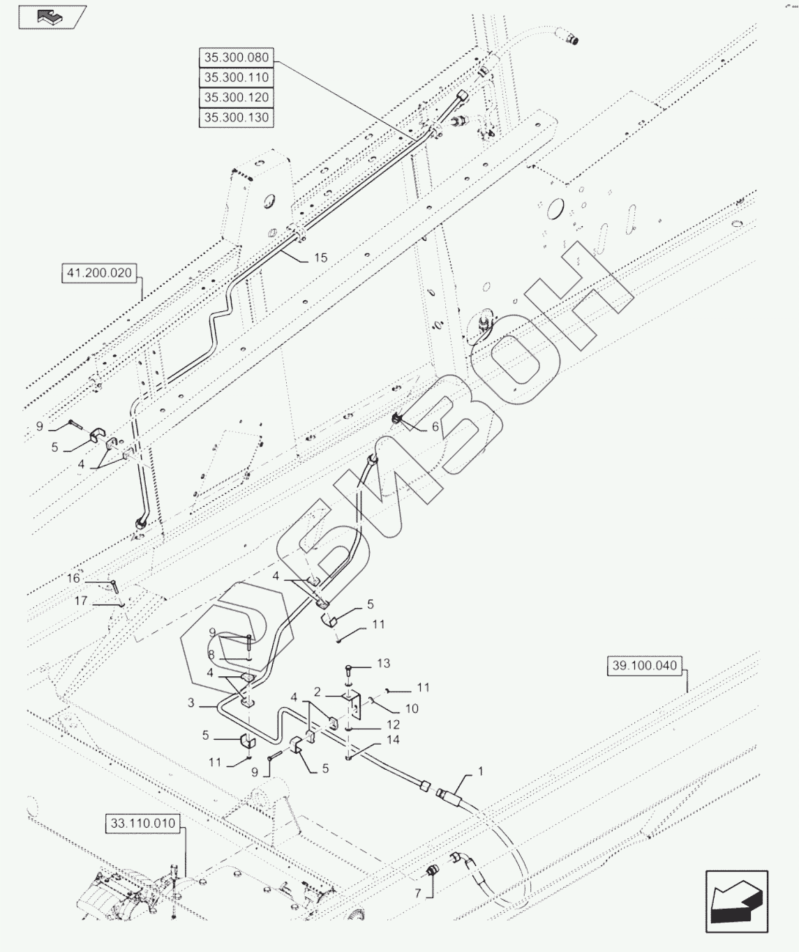 Графический каталог запасных частей к технике: New Holland Комбайн CR9080 E3 (часть 1). HANDBRAKE PIPING
