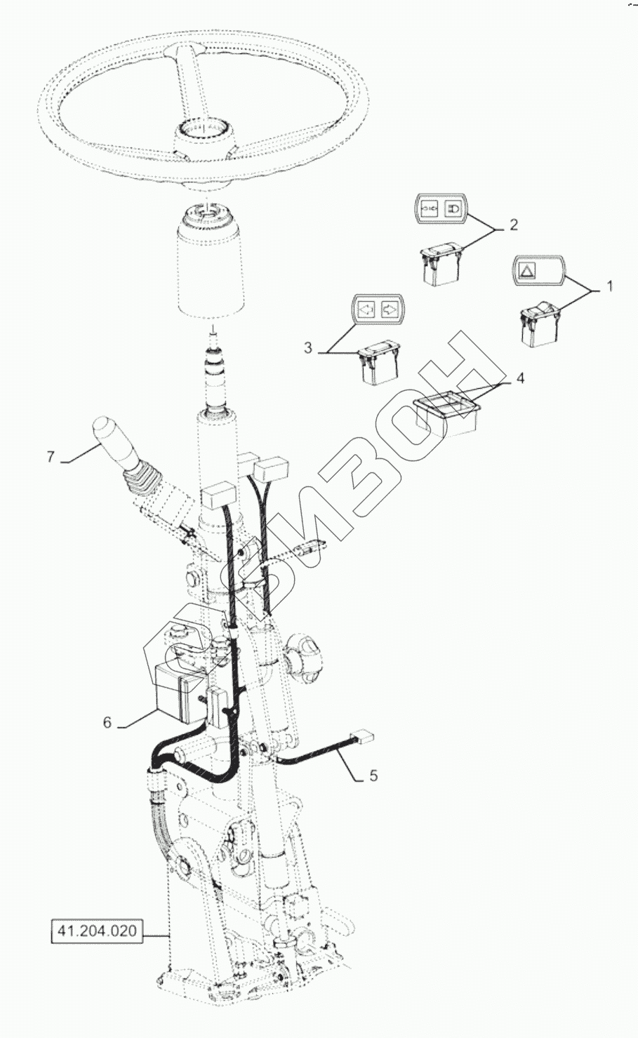 Графический каталог запасных частей к технике: New Holland Комбайн CR9080 E3 (часть 1). STEERING COLUMN