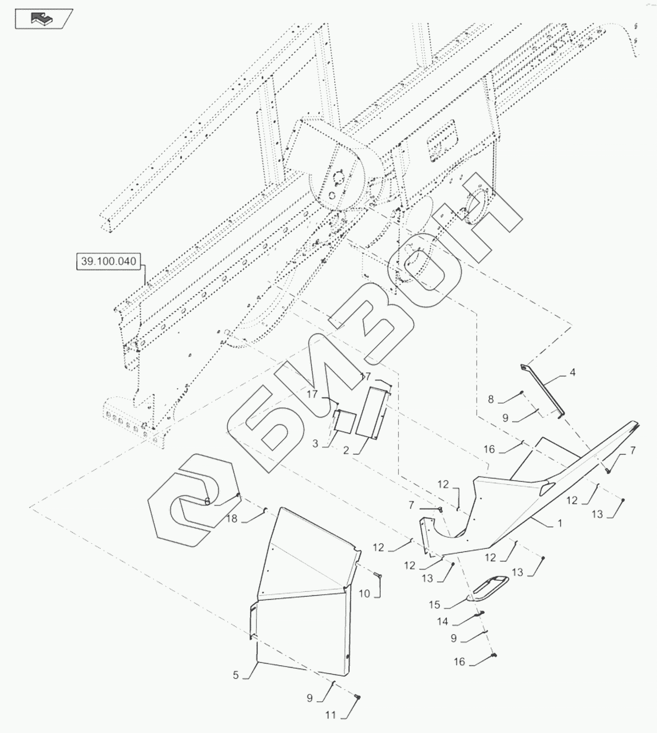 Графический каталог запасных частей к технике: New Holland Комбайн CR9080 E3 (часть 2). SHIELD LH